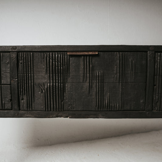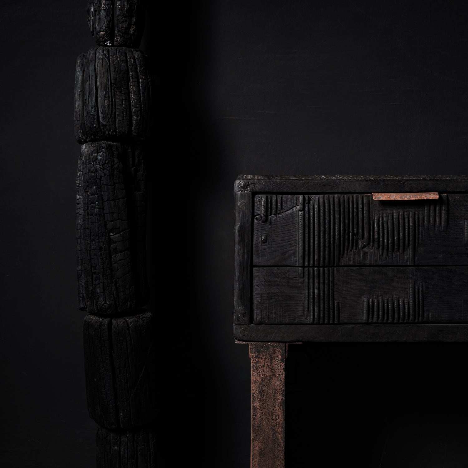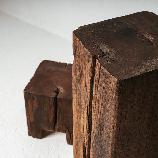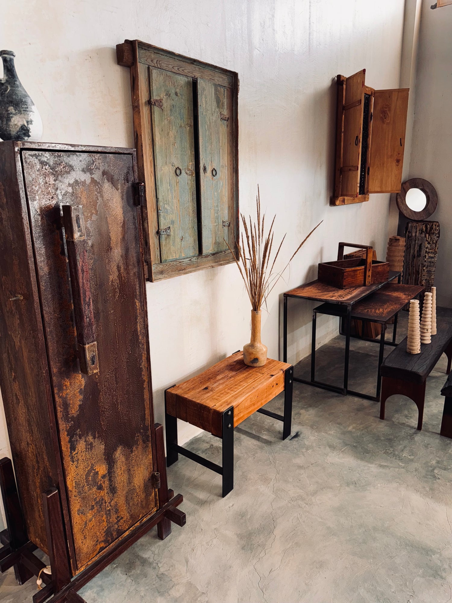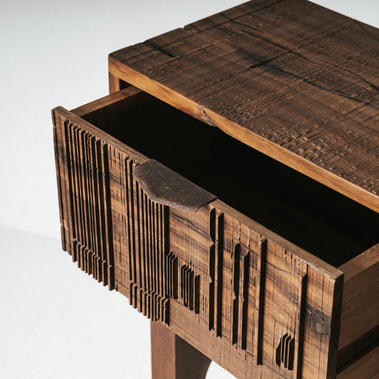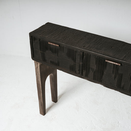 Nous utilisons d'anciennes charpentes, du bois de bateau et du métal oxydé pour créer des meubles qui transcendent leur fonction et deviennent des éléments artistiques. Loin de masquer ces empreintes, nous les mettons en lumière, leur donnant une seconde vie à travers un design sculptural et intemporel. Parce que la matière a une mémoire, et que notre rôle est de la révéler.