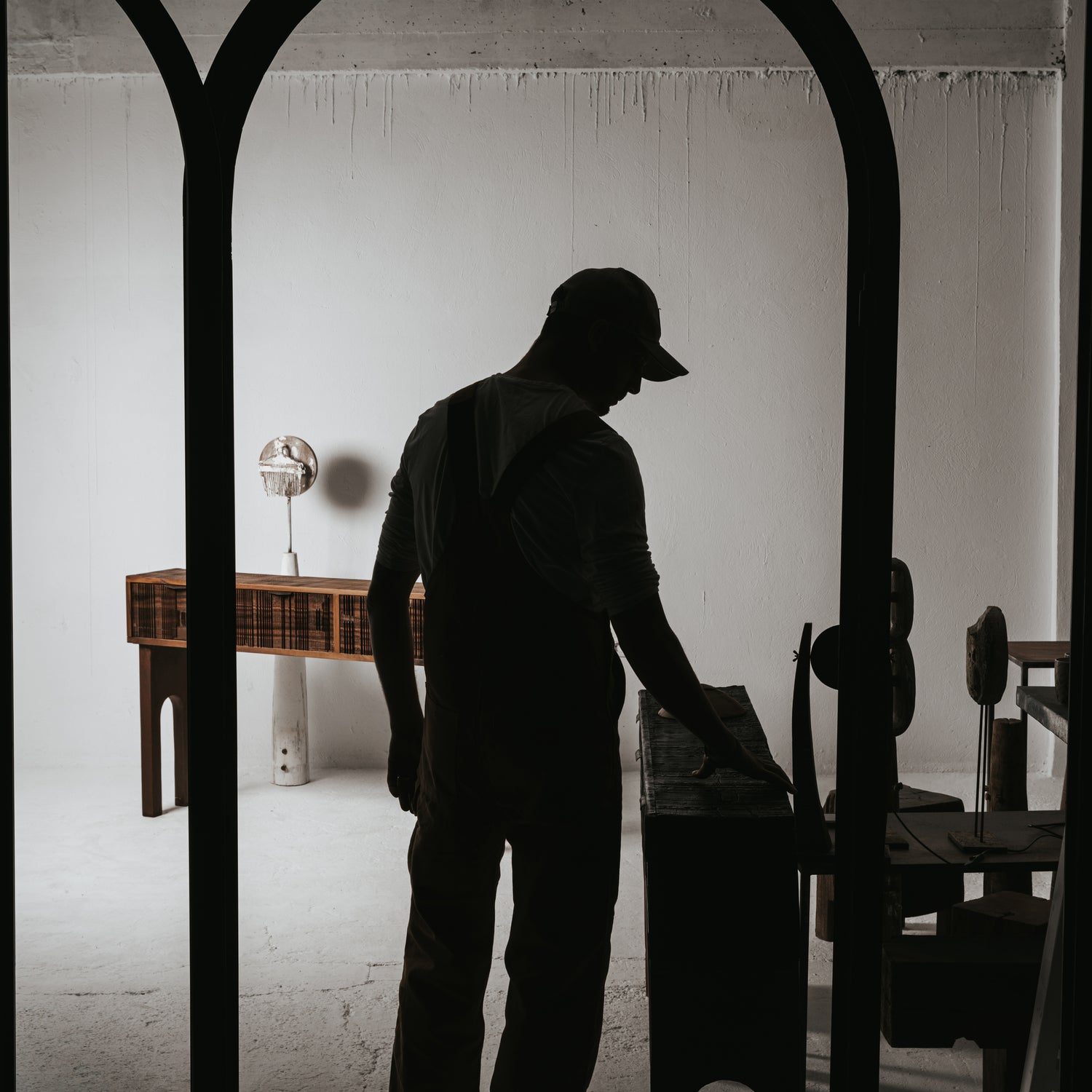 Mon univers est marqué par le contraste entre textures brutes et lignes épurées. Chaque création est un équilibre entre tradition et modernité, mettant en avant le geste artisanal et le dialogue entre le bois et le métal.